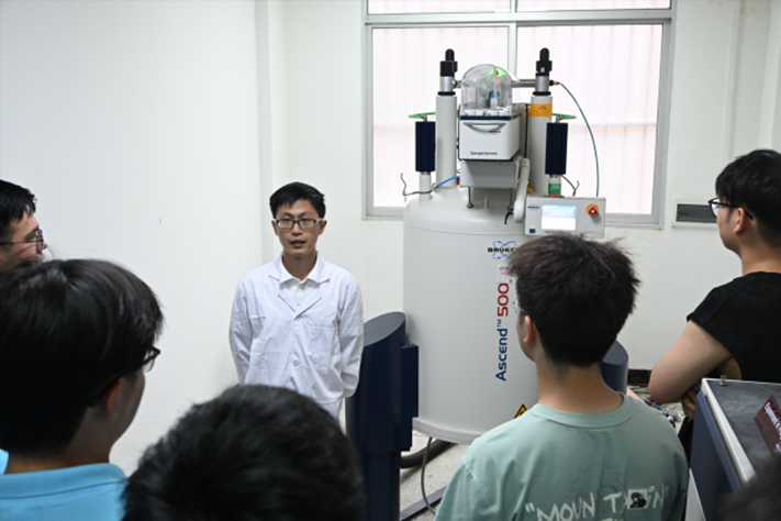 随后,新生队伍走进了实验室核心区域,实验中心姜毅、白云霞、刘义等老师为新同学们展示了核磁共振波谱仪、透射电子显微镜、原子力显微镜和高效液相色谱等先进的科研仪器,老师们进一步讲解制浆造纸的过程,从原料处理到成品制作,每一步都蕴含着科学的奥秘,让复杂的科研过程变得生动有趣,激发了新生们对科学研究的浓厚兴趣。