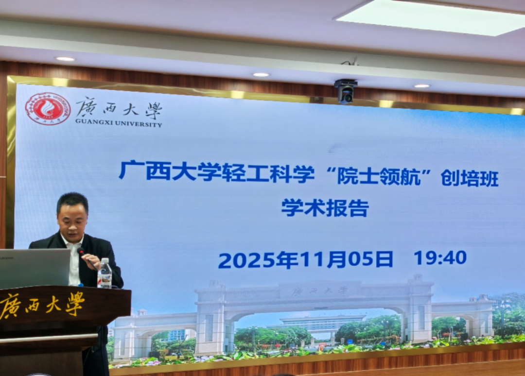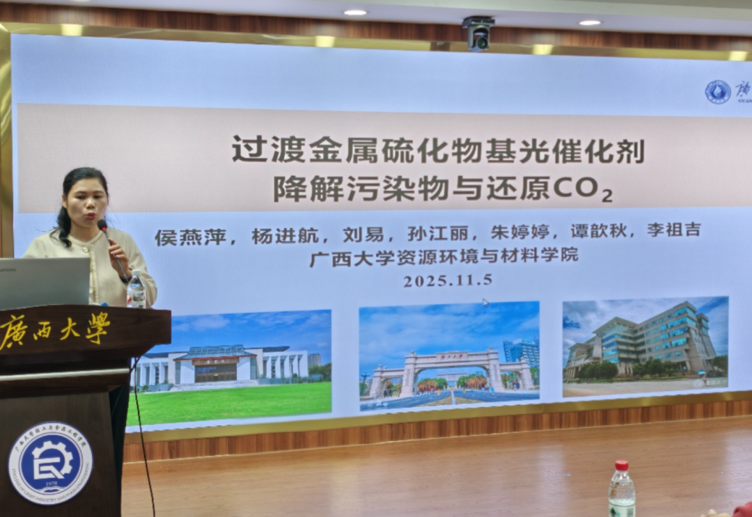 近日,广西大学轻工科学“院士领航”创培班第十期学术报告活动在我院604报告厅成功举办。广西大学资源环境与材料学院的侯燕萍教授担任主讲,以“过渡金属硫化物基光催化剂降解污染物与还原CO2”为主题作专题报告。报告由轻化工程系何辉老师主持, 2024级、2025级轻工科学“院士领航”创培班同学及学院博士、硕士研究生百余人参加。