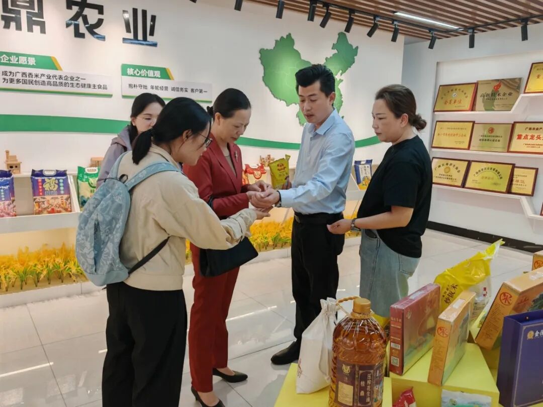 农冬鹏对广西大学一行的到访表示热烈欢迎,并介绍了公司在粮食加工、农产品品牌建设、电商运营等方面的业务布局。颜东梅回顾了与学院的前期接触,表达了在食品风味调控、功能性产品开发、专利与标准共建等方面的合作意愿。双方围绕大米品质标准化、药食同源产品创新、智慧农业数据应用等具体方向进行了深入交流,一致认为校企协同具有广阔的合作前景。