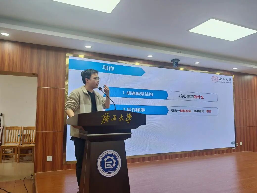 在分享环节,谢意系统讲解了论文筛选、精读与写作框架搭建的方法;赵晋蔚结合轻化工程领域实践,分享了快速融入科研团队及参与专业竞赛的经验;何依宁则介绍了文献管理工具使用技巧及平衡科研与生活的有效策略。三位分享者均从实际案例出发,将抽象方法论转化为可操作的行动指南,使同学们对科研全过程有了更清晰的认识。
