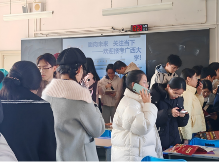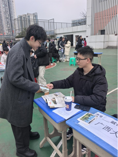 寒假期间,一批批轻工学子带着“西大学子”与“中学校友”的双重身份回到母校。他们通过精心准备的PPT和丰富的资料手册,全方位展现广西大学的校园文化、学科实力与招生政策,尤其重点介绍了轻工技术与工程等优势学科的特色与前景。他们将自己在西大的成长故事娓娓道来,以亲身经历告诉学弟学妹:在西大,不仅能够收获知识,更能找到热爱与方向。