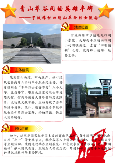 24研3班刘依娜走进红军长征纪念馆,在泛黄的长征日记前久久驻足。她在调研报告中写道:“作为中国共产党人红色基因和精神谱系的重要组成部分,长征精神已深深融入中华民族的血脉和灵魂,成为鼓舞和激励中国人民不断攻坚克难、从胜利走向胜利的强大精神动力。”24研2班江科金则用海报设计记录宁波樟村四明山革命烈士陵园,让更多人看见“四明精神”这座精神丰碑。