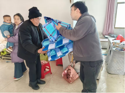 轻工243班杨楠回到贵州三都水族自治县,协助村委会为村里老人发放冬被,活动结束后他说:“这是我离开家乡后,第一次以‘建设者’的身份回来。”同班祝梦璐也在社区参加了形式多样的志愿服务,用实际行动践行青年担当。