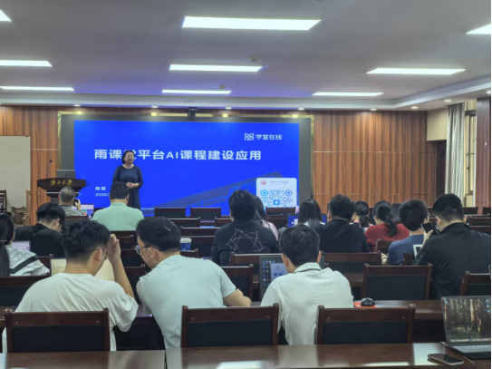 为进一步推动信息技术与医学教育深度融合,探索人工智能赋能教学创新路径,3月31日下午,我院联合学堂在线雨课堂平台,在学院会议室成功举办“雨课堂AI教学平台专题培训工作坊”。本次培训聚焦AI工具在教学全流程中的场景化应用,支持教师自主构建AI课程,并提供AI助教、AI学伴、授课辅助等功能。为方便老师们了解、运用平台的新功能,特开展专题培训。学院各课程负责人、骨干教师及教学管理人员参加学习。学院教学副院长林莹担任主持,雨课堂培训师陈慧担任主讲。
