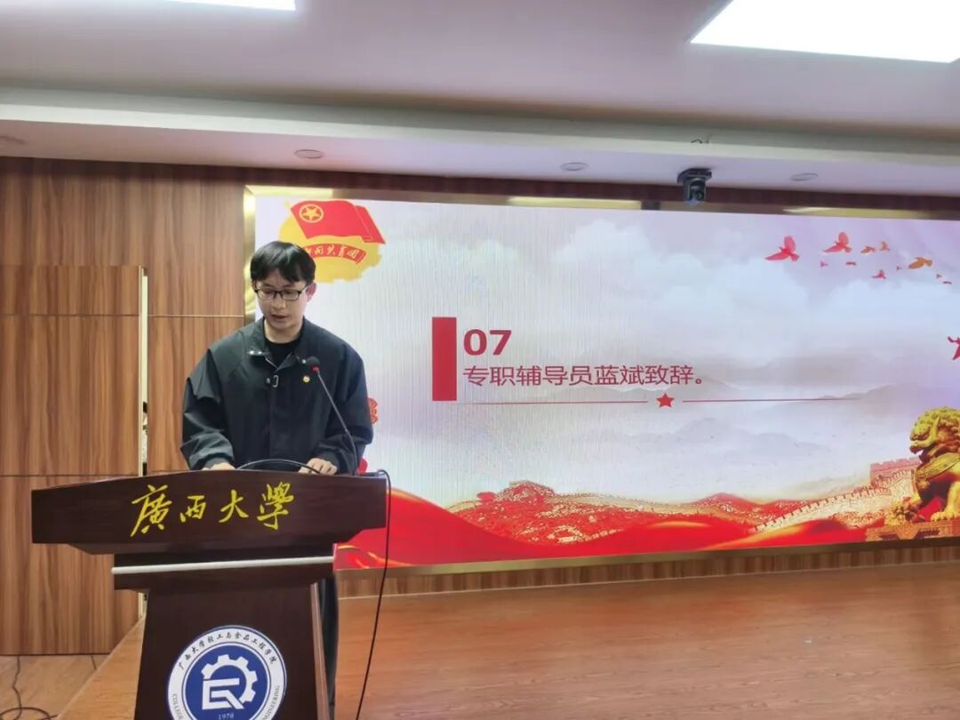 为进一步强化共青团组织建设,激励广大团员青年坚定理想信念,担当时代责任,共青团广西大学轻工与食品工程学院委员会于 11 月 15 日下午举行 2025 年新发展团员入团仪式。