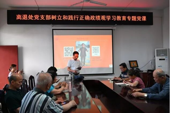活动伊始,离退休教职工第八党支部书记阮业荣带领全体党员集体学习“第一议题”,共同研读《习近平关于树立和践行正确政绩观论述摘编》,深刻领会习近平总书记关于政绩观的系列重要讲话精神,为本次专题党课筑牢理论根基。