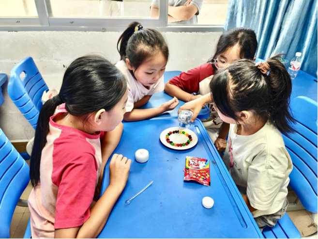 那坡学生动手操作“彩虹糖色素扩散”实验