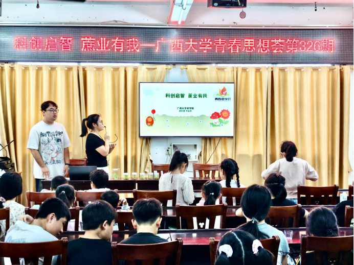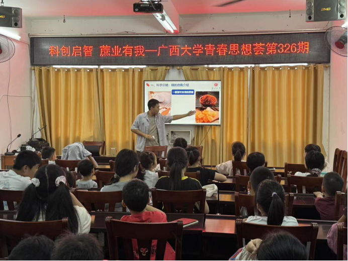 为深化青少年对“种子安全与国家战略关联”的认知,厚植乡土情怀与责任担当,近日,广西大学轻工与食品工程学院研究生会联合广西大学农学院学生会,携手那坡县镇玉社区,成功举办了青春思享荟第326期以“甘蔗与蔗糖科普”为主题的科普活动。活动以甘蔗与蔗糖产业为载体,将“种子安全”这一宏大的国家战略话题融入青少年熟悉的乡土场景,通过寓教于乐的科普讲解与实践体验,引导学生从“身边作物”切入,理解“国家大事”,在心中播撒“关注种子安全、守护家乡产业、共筑国家安全”的责任种子。