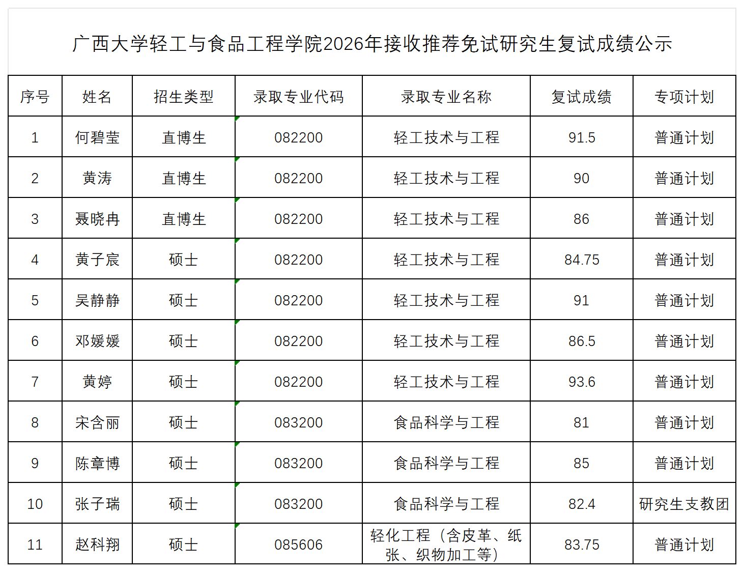 根据《轻工与食品工程学院2026年招收推荐免试研究生复试细则》的要求,我院于2025年9月25-26日组织2026年接收推荐免试研究生复试工作。现将复试成绩予以公布。复试成绩详见下表。